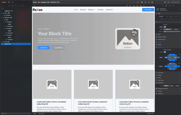 Have you heard of fleXon? It’s a fantastic template library for Rapidweaver Elements. With currently over 150 sections, you’ll have a wealth of options to create stunning websites. And guess what? They’re super flexible, just like their name suggests! fleXon seamlessly integrates with Elements Themes, supports both light and dark modes and is certainly fully responsive.